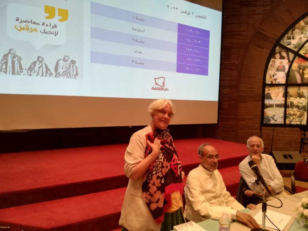 A ce titre, le mercredi 1 novembre et le jeudi 2 novembre 2023, une lecture éclairée et actualisée a été conduite par Antoine Nouis, pasteur de l’Eglise Protestante Unie de France, à l’occasion de la traduction en arabe de son livre « L’Aujourd’hui de l’Evangile de Saint Marc ». Nos Eglises, évangélique du Caire (EEC) et protestante d’Alexandrie (EPA), étaient représentées par notre pasteure Mme Nicola Kontzi-Méresse.